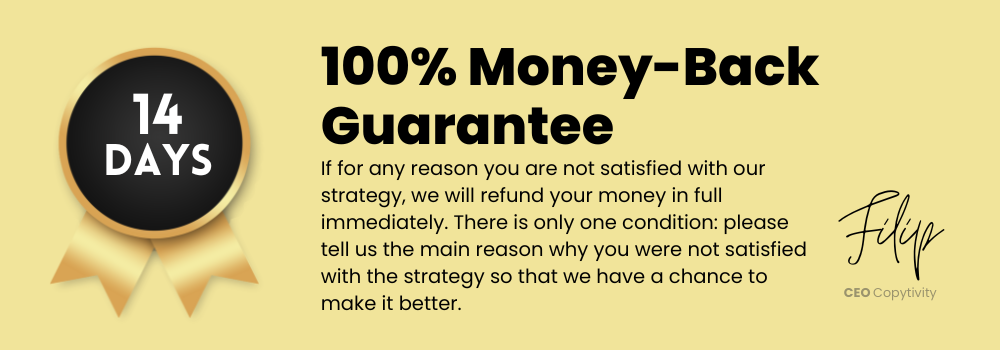 - Bonus 5 -> 13 Pages of Copywriting Checklist - follow these steps and become a copywriting master and the master will sell anything (free subscription bonus - 20$)